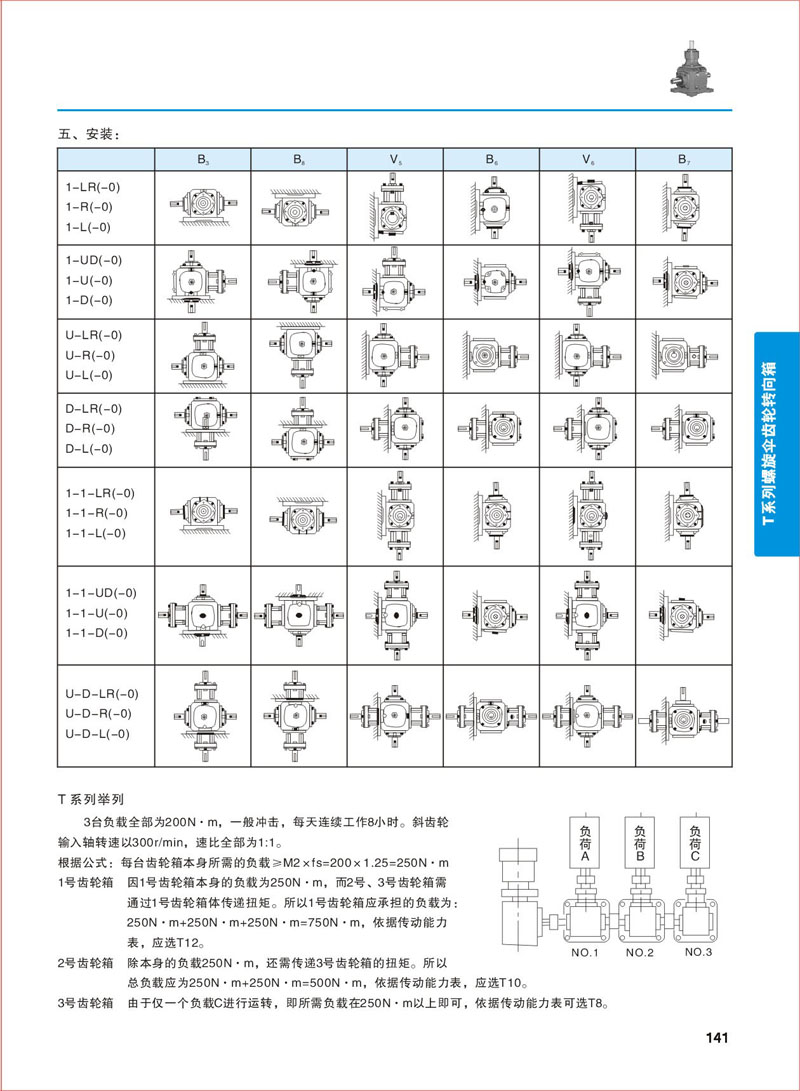 安裝形式 >> T系列螺旋傘齒輪轉(zhuǎn)向箱-