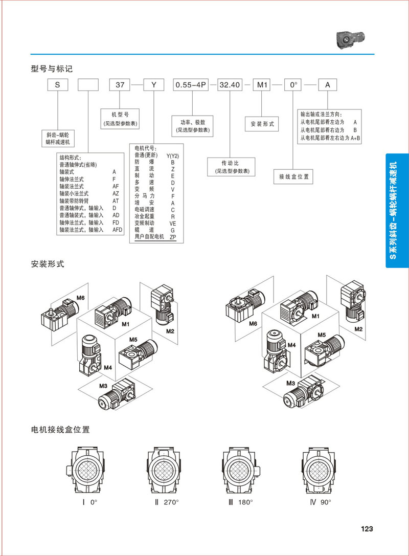 安裝形式 >> S系列斜齒-蝸輪蝸桿減速機-